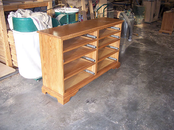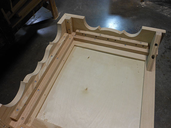 The bedroom furniture tops, dust divider frames, end frames, drawer fronts, drawer sides and drawer backs are constructed of solid wood. We use plywood in the drawer bottoms, dust divider panels between drawers and furniture backs. Construction of the cases is by mortise and tenon and screws. The drawers are constructed using English dovetails on all four corners and open and close on full extension 100 pound ball bearing hardware. Nothing is stapled or nailed and we do not use any medium density fiberboard (MDF) or vinyl wrapped chipboard.